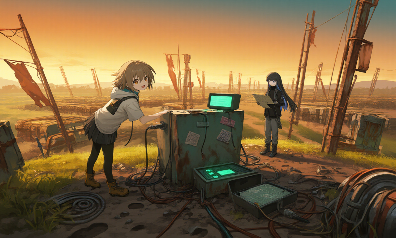 夕暮れが丘を包み込む頃、二人は制御盤の前で最後の点検を行っていた。微弱な電力は確かに残っているが、発射管の多くは錆びつき、配線も不安定だ。