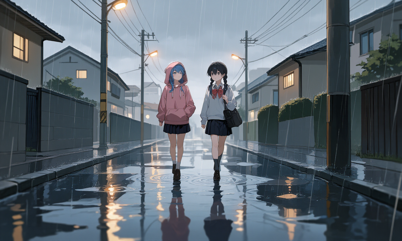 「ねぇねぇ、りんちゃん。この街、ほんとに静かだねぇ。雨の音しか聞こえないよ」 「……静かすぎるのは、逆に危ない」 (静か=安全、じゃないんだけど……なぎさには伝わらない気がする)