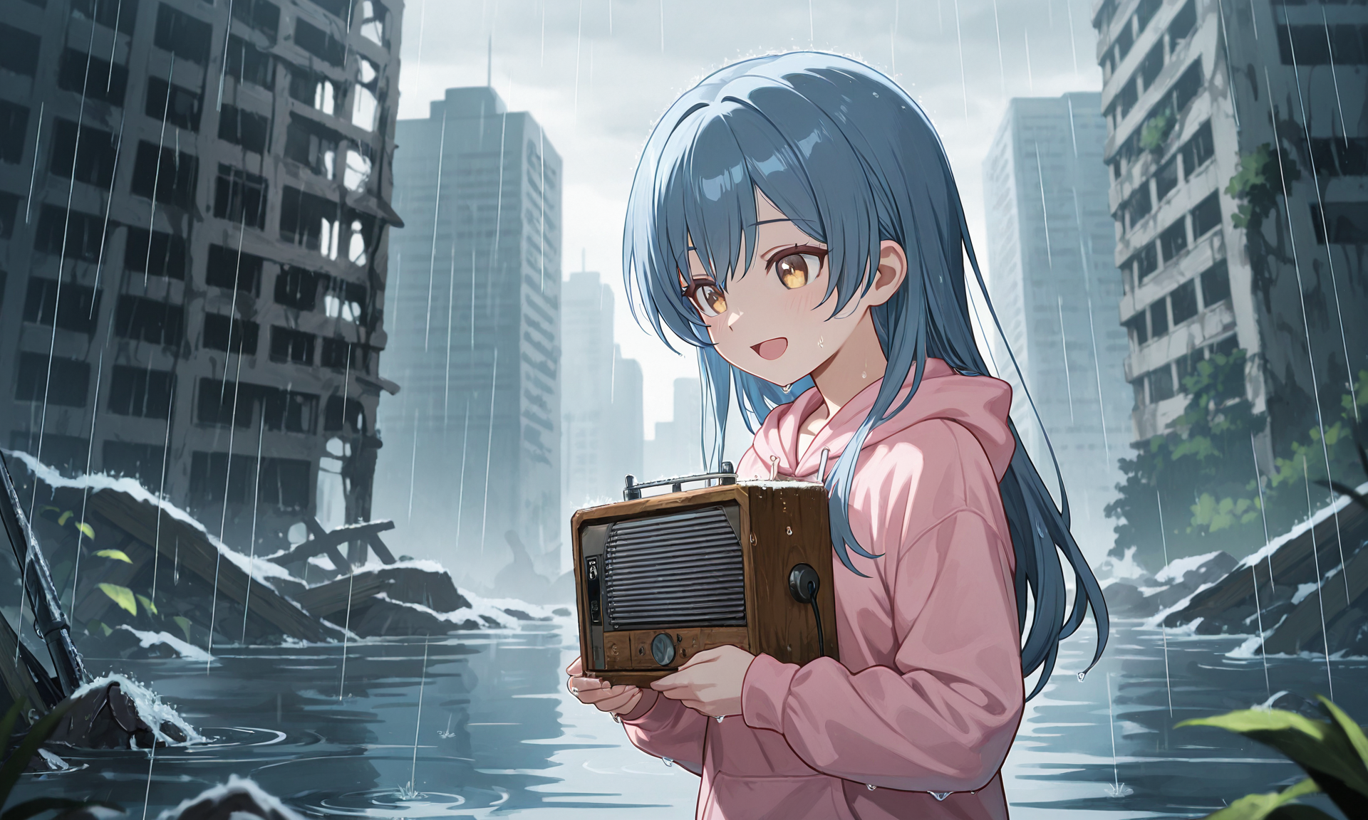 雨音が静かに響く廃ビルの中で、 あたしは煤けたラジオを抱えながら、胸の奥が少しだけ温かくなるのを感じていた。