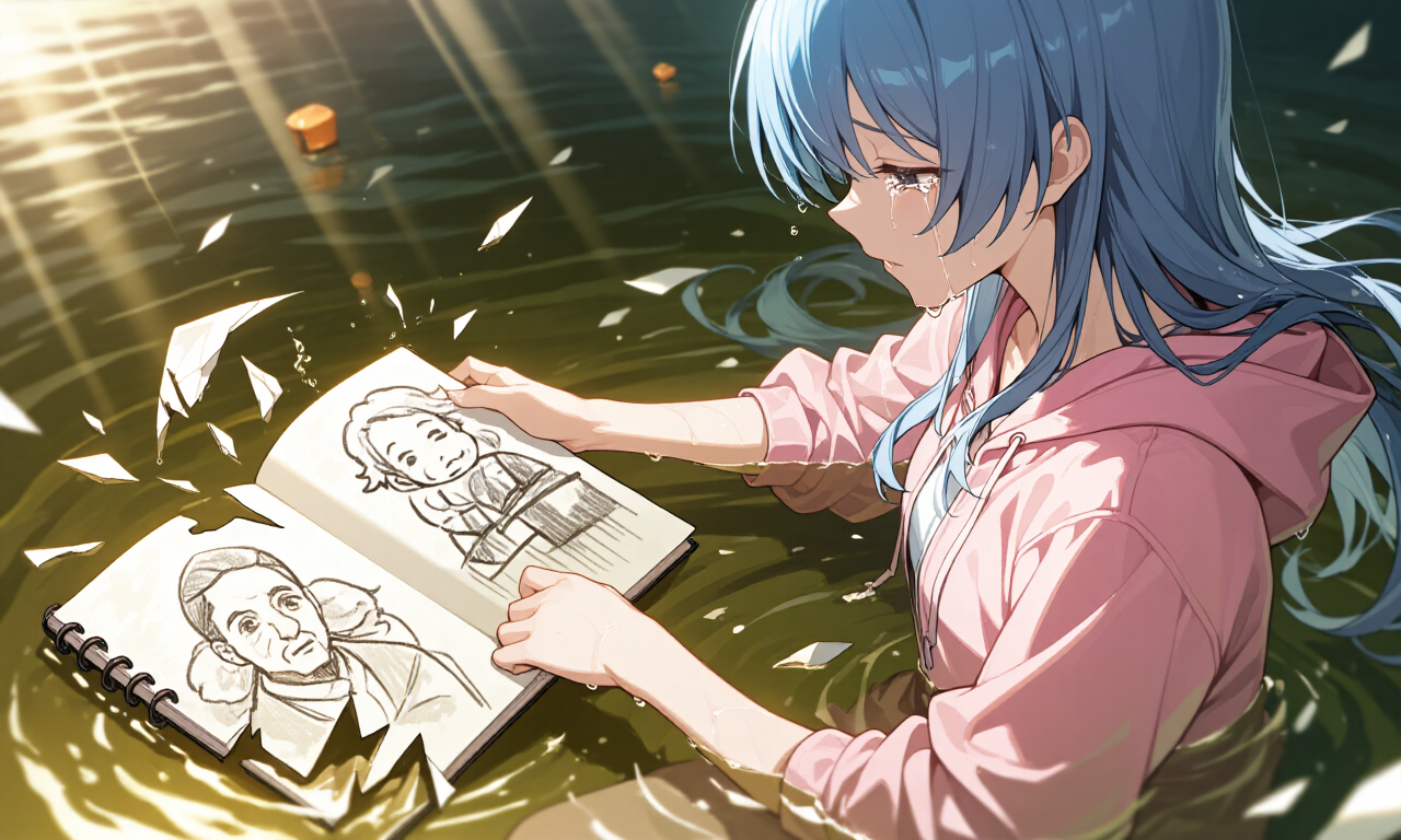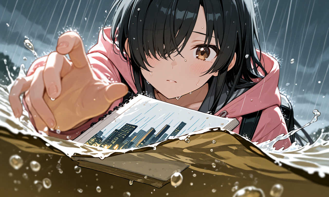 でも、あたしの指先が触れたのは―― スケッチブックの角ではなく、 濁流に沈んでいくリュックの“底”だった。