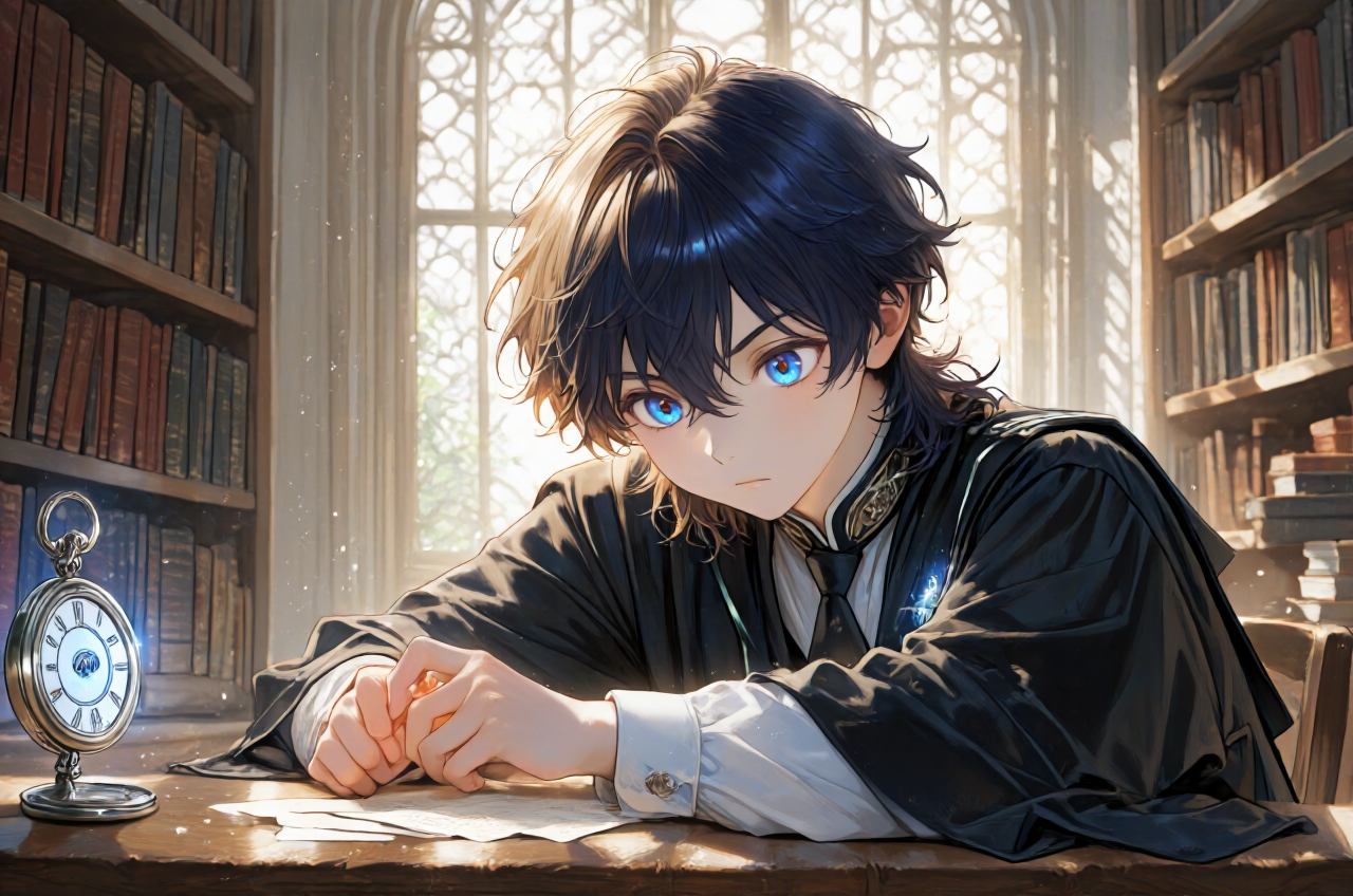 僕はいつもの窓際の席に腰を下ろし、 懐中時計型の魔力制御装置を机の上に置いた。 銀の蓋に刻まれた細工が光を反射し、 まるで「本当にやるの?」と問いかけてくる。