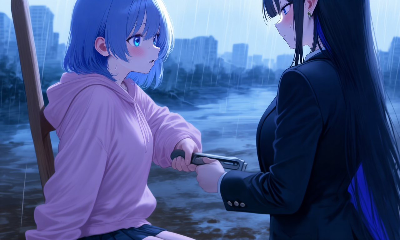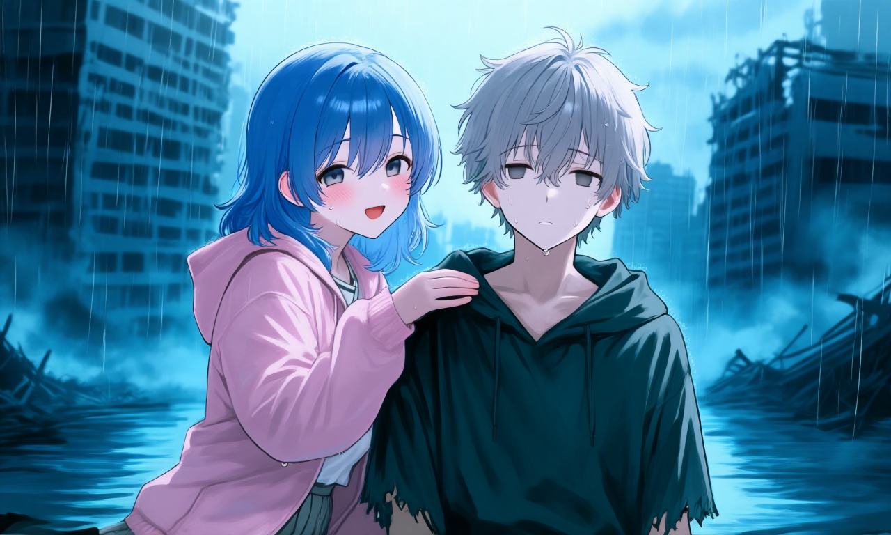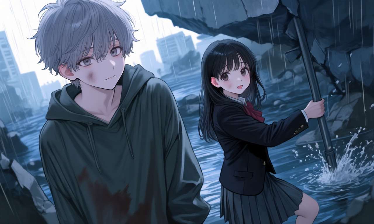 あたしは泥沼の縁で、不格好な松葉杖を振り回しながら叫んだ。 雨水が勢いよく流れ込み、濁った水面がハルくんの顎の下――あと数センチに迫っている。