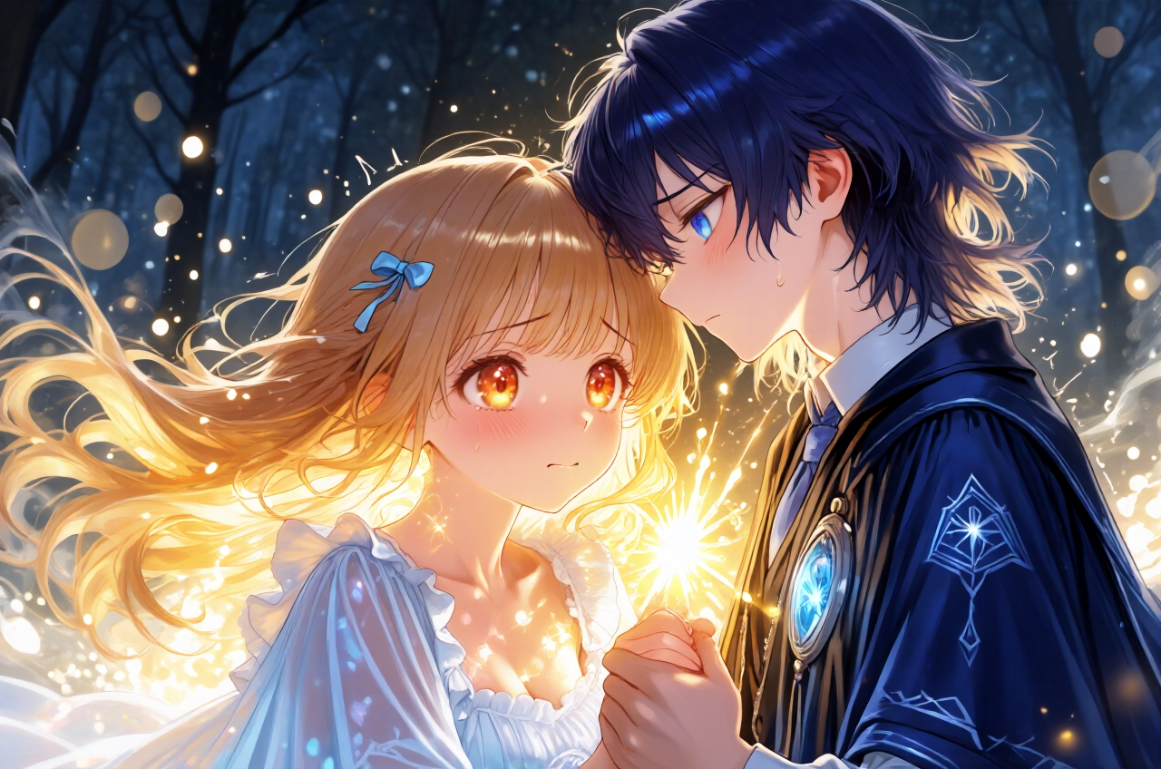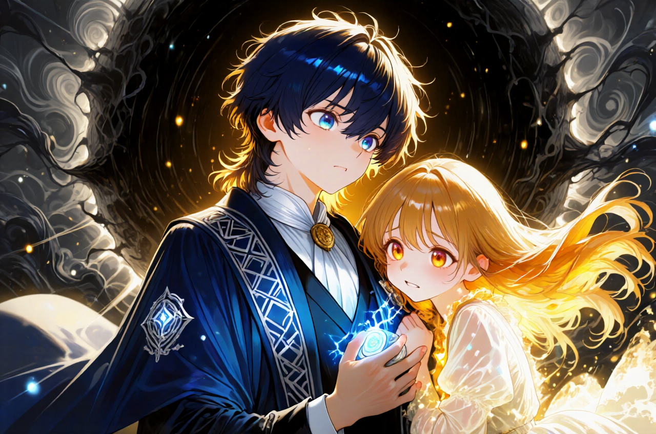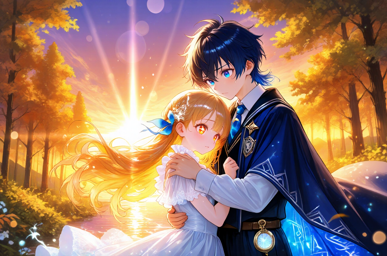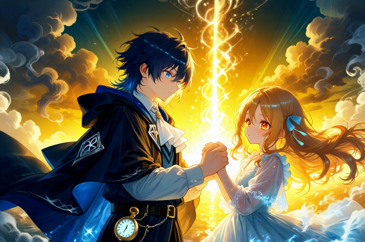 あらすじ 深い森の奥へ進むにつれて空気は鉛のように重く沈み、葉擦れも虫の羽音も途絶えて音が死んだ世界となり、僕が指で刻むリズムだけが唯一の生きた音として残った。 やがてリンネの握るネギやクロスの筋肉までもが灰色に変色し始め、魂で抗うクロスの気迫も虚しく侵食は意思を嘲笑うように広がって彼の自信を初めて打ち砕いた。 視界の先には空間を抉り取ったような黒い空洞が鎮座し、光を貪る残滓が渦を巻く“残滓の深淵”が世界の病巣として脈動していた。 アイリスはそれを心臓と恐れて僕の袖を掴み、懐中時計の脈動さえ上位捕食者の前で怯える小動物のように弱く震えた。 僕はその律動が生命の鼓動ではなく周囲の音を喰らい破壊だけを再生産する最悪のリズムで、波形そのものが壊れていると理解した。 アイリスの瞳に宿る覚悟に僕は必ず浄化すると応えたが、直後に心臓の塊が大きく収縮して灰色の衝撃波を放ち沈黙の深淵が口を開いた。 黒い渦から粘る影が滲み出て獣の形をとり、ノイズのように揺らぐ残像は実体を持たないが殺意だけに質量を宿して猛然と襲いかかった。 クロスの魂の一撃は空を切り、触れただけで彼の侵食が加速して攻撃不能と接触リスクの二重苦が露わになった。 獣はガラスを引っ掻く不協和音を放ち、僕の構築式魔法も展開と同時に粉砕され懐中時計の魔力回路が焼き切れて装置は完全停止した。 理論で組む式そのものが壊される以上、僕はただの子供同然に戦えず、焦燥の中でリンネも恐怖で膝を笑わせながら必死に構えるしかなかった。 思考が焼き付く刹那、クロスは大剣すら捨てて理解不能な“魂のポージング”で獣の軌道を逸らし、非論理的行動が未知の敵の反応を一瞬鈍らせて僕に考える時間をもたらした。 魂や理屈を捨てて空白を得た僕は、式が壊されるなら式を使わない方法はないかと直感に縋り、背後から震える声で支えるアイリスに振り向いた。 彼女は怖れに震えながらもまだ歌えると言い、僕がいれば大丈夫だと儚い笑みで信頼を示し、その言葉が凍った思考を砕いた。 獣が迫る極限の中で、彼女は自分の音がいつか止まる恐怖を告白し、最後まで僕となら歌えると願い、私の音を君の受け皿にしてと託した。 世界が静止したような沈黙を切り裂く一音が鳴り、灰色の靄が震えて獣の残像が怯む中、アイリスの光は命を削るほど痛切でこれまでの可憐な魔法とは明らかに質が違った。 僕は彼女の手を離さないと誓い、指先でなぞるとんとんのリズムを彼女の震える拍動に重ね、沈黙した装置を捨てて心拍と直結する方法を見出した。 魔法式という型に嵌めるから壊されるのだと悟り、装置も理論も越えて僕のリズムを彼女の心臓へ直接リンクさせる本能のセッションに踏み込んだ。 耳を裂く不協和音がアイリスの命の音を削ろうと押し寄せ、彼女の膝は折れかけたが僕は抱き留め、乱れれば命が尽きる極限下で二人の拍を同期させた。 アイリスは目を閉じて祈るように僕の手を胸に抱き、僕のとんとんが彼女の心音と溶け合って二つの音が一つの音楽に昇華し、深淵に産声のような音が走った。 不協和音が揺らぎ、黒い渦が悲鳴のように軋み、毒の心臓が初めて僕たちを恐れた瞬間、重ねた手から黄金の光が爆ぜて世界に希望の音色が満ちた。 光はクロスの灰色の斑点を雪解けのように消し、リンネの頬に血色を戻し、仲間全員を包み込んで魂の回復をもたらした。 浄化の旋律が不協和音を塗り替え、獣の残像は断末魔すら上げられず霧散し、解析不能の大共鳴たるグランドレゾナンスが深淵を満たした。 黄金の光に解かれた黒い渦と灰色の空が晴れ、久方ぶりの生きた風が森を駆け抜け、世界の毒の心臓はついに崩れ落ちた。 クロスは筋肉に戻る魂の感覚を確かめて歓喜し、リンネは緑を取り戻したネギを抱いて安堵の涙をこぼし、日常の軽口がこの地獄にかすかな温度を戻した。 しかし安堵の裏で、僕の腕にいるアイリスの身体は驚くほど軽く、抱けば壊れそうな儚さを帯びて小さく僕の名を呼んだ。 彼女は大丈夫だと微笑むが、指先はカタカタと強く不規則に震え続け、黄金の温もりの中でもその震えだけは止まらなかった。 心臓は浄化され残滓の波形も消えたのに震えが消えない理由が見えず、胸騒ぎのまま僕は彼女の手を包み込んで確かめた。 やがてアイリスは私の音がすごく小さくなっていると告げ、短命種としての宿命と、共鳴が彼女の限界を超えさせたかもしれない現実が僕の胸を締めつけた。 彼女はそれでもアリアと一緒に歌えたことに満ち足りて嬉しかったと語り、僕は別れを思わせる言葉にやめてと叫ぶほどの恐怖を覚えた。 アイリスはアリアの音とひとつになれた幸福を静かに微笑んで伝え、その澄んだ瞳の美しさが今は残酷に痛みを伴って僕に突き刺さった。 僕は終わりではないと自分に言い聞かせ、ここからが本当の戦いだと誓い直し、彼女の冷たい手を祈るように強く握った。 絶対に助ける、君の音が消える