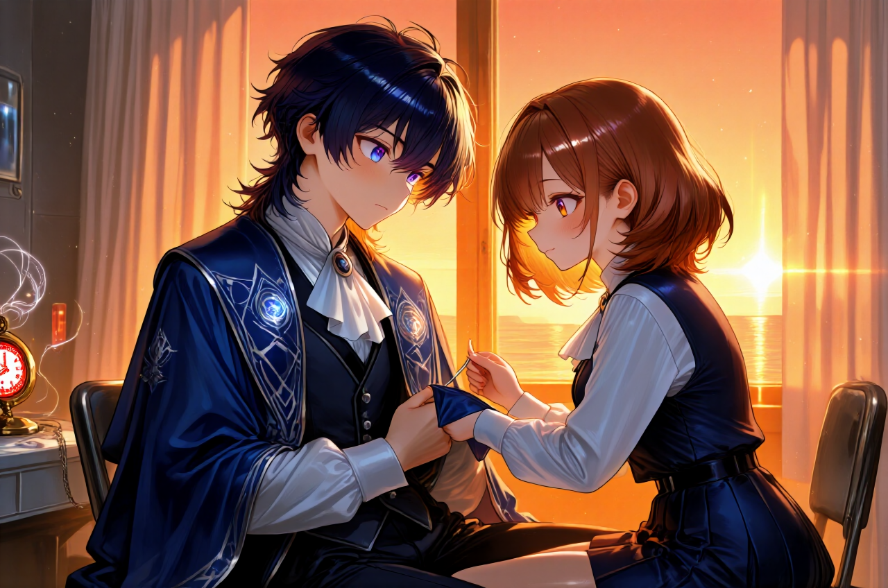 リンネは裁縫道具を取り出すと、僕の隣にそっと腰を下ろした。 その動きは、いつもの明るさとは違う。 まるで、壊れかけた何かに触れる時のように慎重だった。