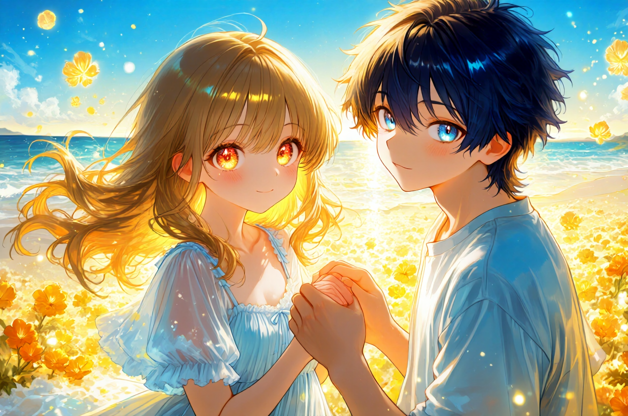 麦わら帽子を揺らし、潮風に白いワンピースをなびかせて笑う少女。 その髪には、少し色褪せた、けれど大切に手入れされた黄色いリボンが結ばれていた。