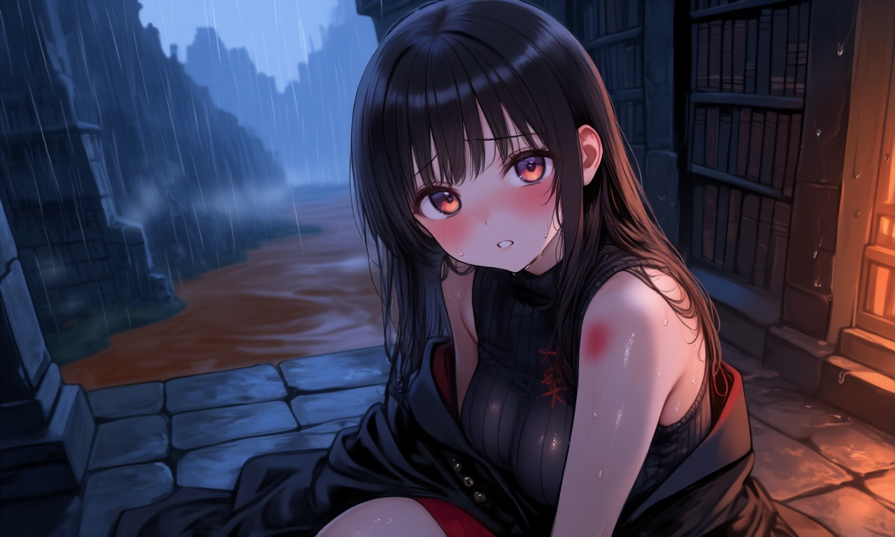 りんちゃんは何も言わず、ただ一冊の濡れた本を拾い上げた。 指先でページをめくろうとして、すぐに手を止める。 水を吸った紙は、触れただけで崩れてしまいそうだった。