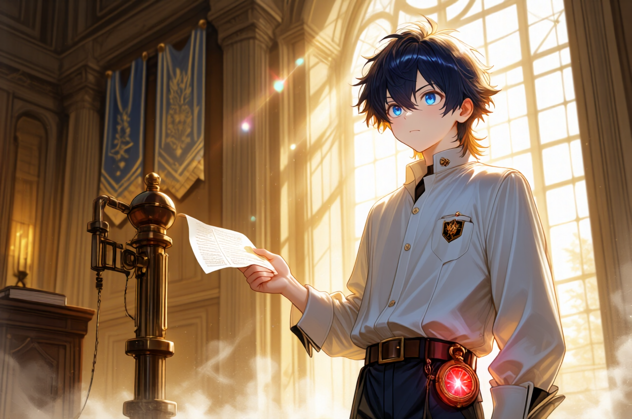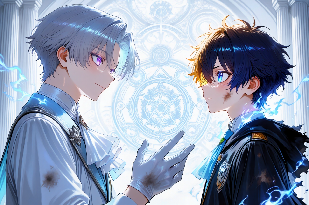 あらすじ 深夜と夜明けの狭間、医療棟の最上階テラスで世界が最も深い沈黙に沈む中、ナギは月光に白髪を透かしながらアリアの迷いを見抜き、遅れを咎めつつ調律の開始を告げた。 そこでアリアはリンネが持たせた五倍味噌おにぎりという“兵器級”の夜食からどうにか脱出してきたと弁明し、ナギは半ば呆れながらも背後に回って首筋へ指を滑らせ、魔力回路の不協和音を矯正すると宣言した。 やがて翡翠の魔力がアリアの体内へ流れ込み、救いたい感情と理論の衝突で発生していた内なるライブの乱調を、痛みと快楽を伴う圧倒的な純度で上書きしていく。 アリアの視界は白く明滅し、指先は無意識に「とんとん」を刻み、世界のノイズはひとつずつ静まり、ナギの首筋の毒々しい青がわずかに透明さを取り戻した。 ナギは君が正しく「鍵」になれば私の痛みも彼女の絶望も終わると告げ、アリアは思考を止めて冷たい旋律に身を委ね、アイリスの余命カウンターの赤い刻みから束の間だけ目を逸らした。 調律後、震える足取りのアリアは余韻に苛まれつつ「89日20時間」の数字に追い立てられ、第四訓練場の扉を開けた途端にクロスの咆哮と熱波に殴りつけられた。 筋肉で魔法を凌駕するクロスは広背筋の魂を見ろと叫び備品を破壊寸前に追い込み、理論派のアリアは制御不能だと制止し、コトネは解析データに“大胸筋による磁気嵐”という不本意な項目を追加せざるを得なかったと冷静に報告した。 確率は依然0.03%と厳しいが新しい音が加われば変数は変わるとコトネは示し、指し示された先で巨大な盾を磨くリアムが、かつての神童アリアに合奏参加の栄誉を叫び、命に代えて一秒を守ると重すぎる誓いを立てた。 アリアは畏まりすぎる態度に困惑するが、リアムは盾に純度100%の信頼と鋼鉄の合金を盛り込み、比重まで持ち出す熱さで押し切った。 そこへリンネが特製「元気出ろスペシャル・五倍味噌スープ」を持参し、液体の尊厳を失った暗黒物質でリアムの喉を溶岩のように焼きながらも、物理で脳を起こすと豪語した。 涙目でサムズアップするリアムを見届けたアリアは、この騒がしく不完全な面々こそが自分たちのアンサンブルだと苦笑しつつ、膝の「とんとん」に温度が戻るのを感じ、不協和音のセッション開始を宣言した。 高所の観覧席からナギはアリアに全体の律動を刻む役割を任じ、三人はその波形に自分の音を重ねるよう指示し、アリアは爆発しないことを祈りながら仲間を見渡した。 リアムはリズムを包むゆりかごになると胸を張り、クロスは広背筋で壁を三枚貫く勢いを誇り、コトネは三人の波形が嵐の中のドラ猫の喧嘩のようだと酷評してメトロノーム機能に保険を検討した。 ナギがタクトのように指を振ると、昨夜の調律の余熱でアリアの魔力回路が跳ね上がり、彼の「とんとん」が訓練場の空気に波紋を広げて全員を束ね始めた。 クロスの一撃が地鳴りと共に波形を荒らすと、リアムは盾の「鐘」で衝撃を指向性に束ねてノイズを切り、コトネは計測周期3.5で誤差甚大と叫び、アリアにもっと強く叩けと要求した。 三者三様の個性がアリアのリズムを受け皿に暴れ、一本の手綱で三台の暴走馬車を捌くような重圧がのしかかる中、ナギは逃げれば死に変わると釘を刺した。 臨界を超えた瞬間、共鳴係数が逆流し、リアムの盾は歌いだし、コトネが異常過負荷を警告した刹那、ひまわり色・赤・鋼色が混ざって空間が歪み、大爆発が起きて全員が吹き飛ばされた。 煙の中、地面に頭から刺さるクロスは魂に来たと満足げで、アリアは自嘲し、コトネは爆発の威力がソランの標準魔法の300%だが自爆率ほぼ100%という凶暴な解析結果を突きつけた。 ナギはひどい演奏だが音量だけは認めると降り立ち、首筋の青は先ほどより薄く、ノイズの逃げた兆しを見せ、リンネはネギで爆風を防ぎつつアリアのボロ服に溜息をつき、今は直さないと背中を勢いよく叩いて鼓舞した。 日常の暴力的な活で迷いが晴れたアリアは、完璧な制御より“聴いて束ねる”ことに核心を見いだし、着替える暇もなく事務局へのエントリーを決断した。 コトネは自爆覚悟の特攻を皮肉りつつも確率は0.03%よりマシになると微笑し、煤だらけの不協和音のまま一行は訓練場を後にして、アカデミー大会の熱に包まれた中央ロビーへ向かった。 リアムは署名に盾構えの覚悟を込め、クロスは大胸筋の鼓動が聞こえる字を誇示し、コトネは解読に三秒かかったが受理されると淡々と告げ、魔導ポストが受理音を鳴らした。 直後、背から凍る静寂が押し寄せ、白い軍服のソランが完璧な楽団を従えて現れ、不完全なリズムと制御不能な重低音と理論なき盾を「騒音」と断じてアリアを嘲った。 アリアは騒音で結構だと正面から返し、君の完璧な静寂で一生消せないほどうるさく鳴らすと宣言し、ソランは失敗作と切り捨てて大会をレクイエムの舞台にすると冷たく言い残して去った。 アリアは彼の手首の灰色の侵食が進んでい