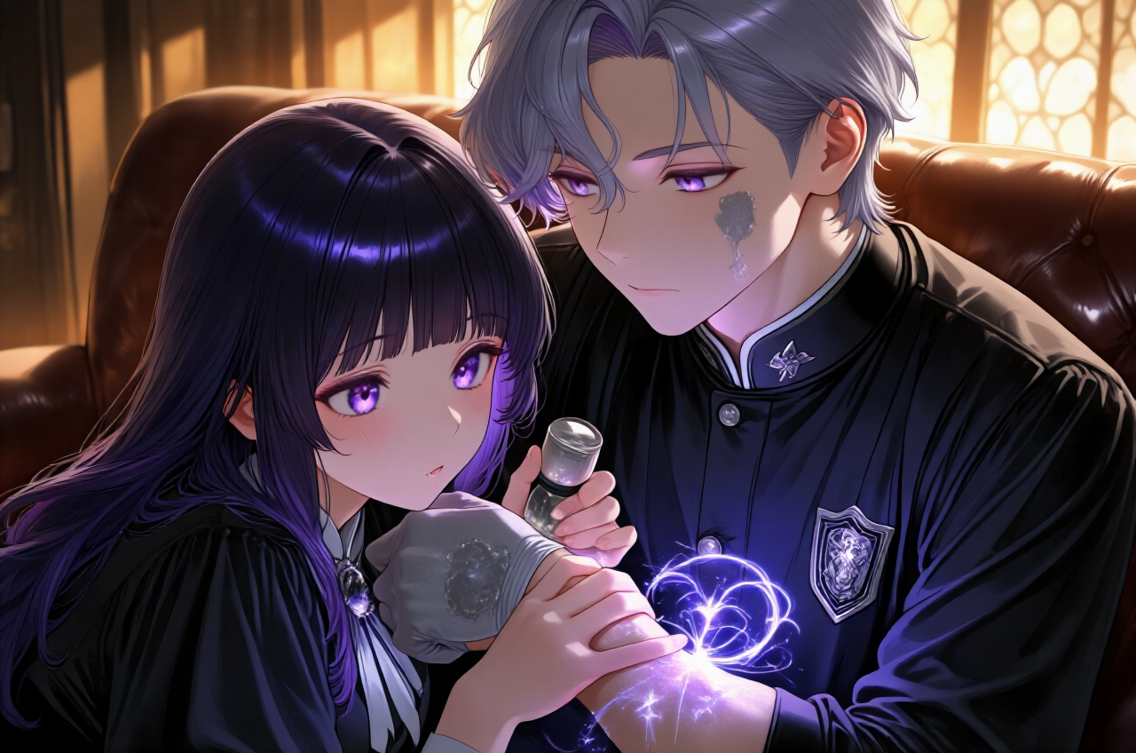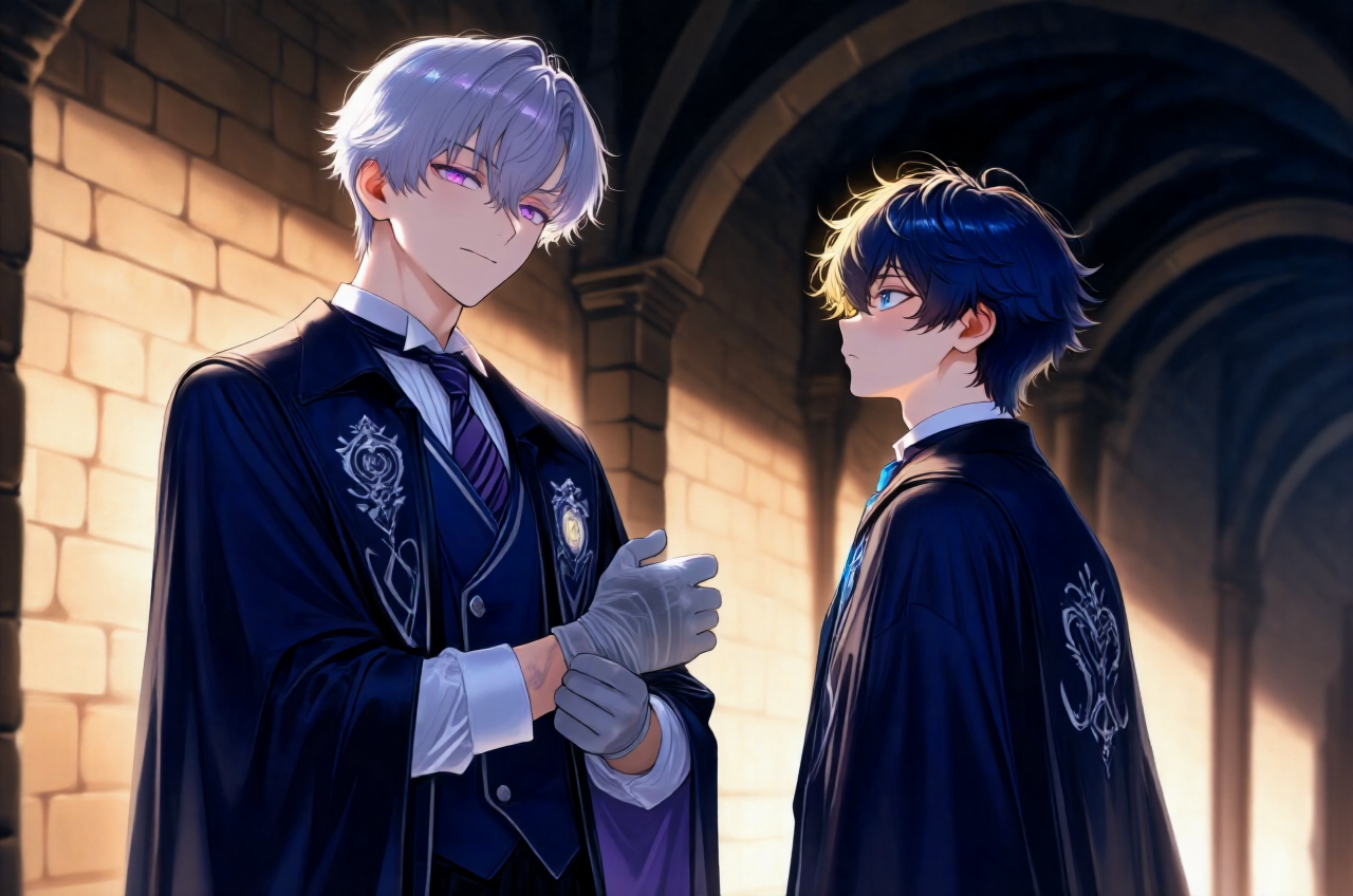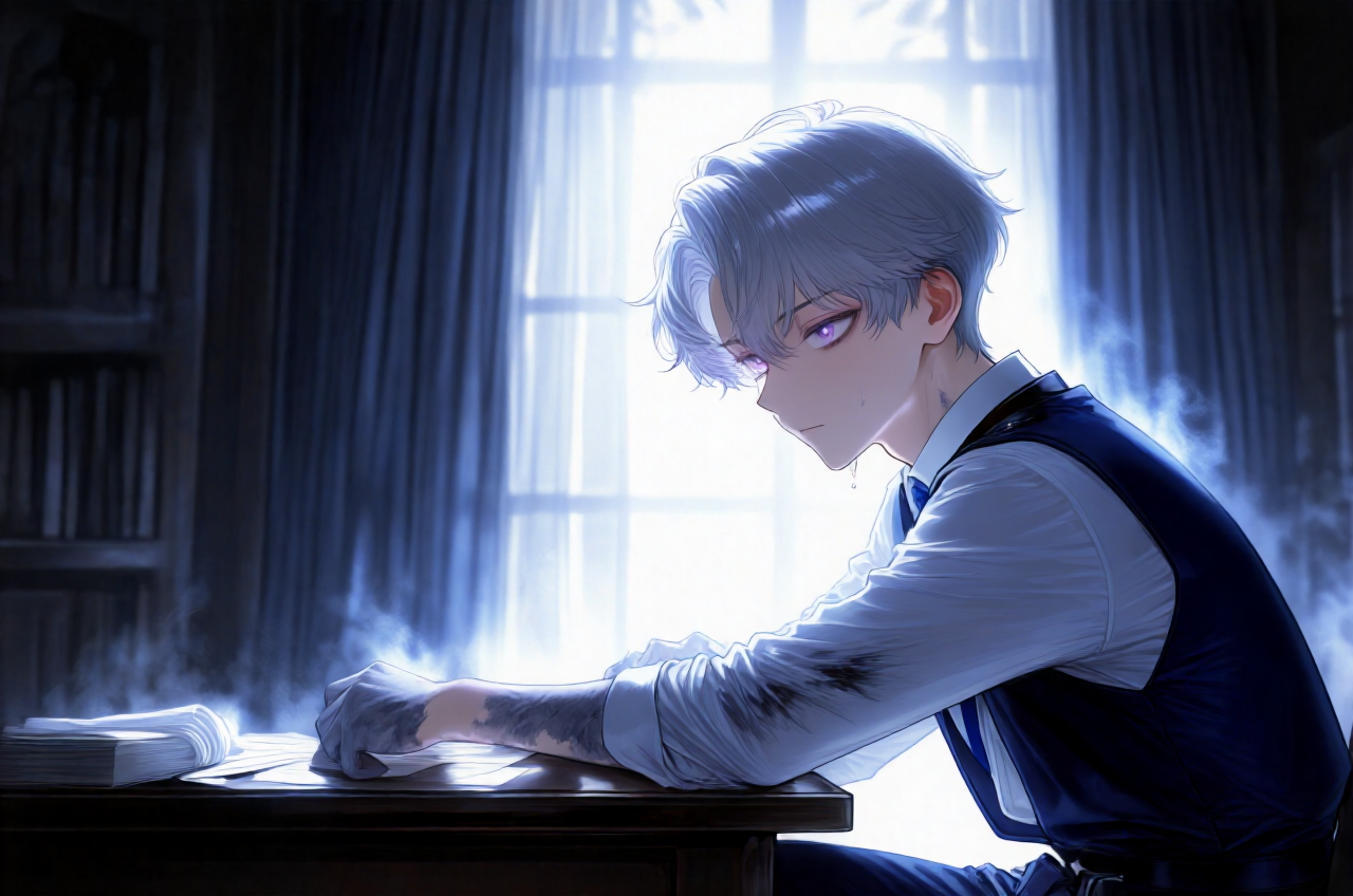 あらすじ 世界は余分な音に満ちていると嘆く生徒会長ソランは、早朝の執務室で防音術式を二重展開し、理論で統御された静寂を唯一の美とみなして完璧なコーヒーの蒸気すら制御するが、左手首には世界のノイズを吸い上げ圧殺した代償として侵食レベル2の灰色が広がり、体の奥底から震える「澱」に裏切られていた。 ところが、その冷徹な秩序を乱さない歩みで秘書官セレスが入室し、温かな指先で処置を施すと、ソランはその体温が構築式を乱すノイズだと切り捨てつつも、彼女の抑制された熱が唯一の錨として自身を現実に繋ぎ止める事実を否定しきれない。 彼は「失敗作」と断じられたアリアのエントリーと、クロスやナギらとのアンサンブル結成報を鼻で笑い、理論値に達しない演算ミスの展示会に過ぎないと断罪するが、セレスはナギの「青い血」がノイズに最も敏感であることを指摘し、彼女がアリアを「調律」している点に不穏を感じる。 ソランは大会でレクイエムのごとく静寂で彼らの不快なノイズを葬ると宣言し、灰色を白手袋で覆い隠して執務室を後にするが、学院の鐘の音すら神経に針のように刺さり、アリアの「騒音」がなぜか自分の灰色を疼かせることに苛立つ。 第四訓練場では、クロスの筋力を魔力波形に変換する乱暴な剛力、リアムの純度100%信頼という精神論の盾、リンネの五倍味噌スープという生活臭の兵器化が乱雑にうねる中、解析担当コトネの計測値は嵐の海のように乱れ、セレスも成立不能な波形だと評価する。 にもかかわらず、ソランは雑音の中心で膝に「とん、とん」と一定のリズムを刻むアリアの姿に視線を縫い付けられ、旧来の機械的拍ではなく、異質で底の見えない同期の芽を読み取って不快な違和感を覚える。 彼はその場を去っても感覚の過敏が収まらず、世界のノイズを抑圧してきた自らの静寂が、アリアの無秩序なエネルギーに当てられて一時的過敏反応を起こしているのだと自己診断し、否認と苛立ちを強める。 やがて回廊に響く一定の律動――とん、とん――が彼の聖域を抉るように迫り、仲間と別れ一人で歩むアリアが現れ、ソランの理論では計算できなかった爆発を示唆して挑発する。 ソランは価値なしの自殺行為と切って捨てるが、アリアは九十日の壁を越えるために正気では救えないと応じ、燃え尽きた右手の「白」をさらして、彼女(アイリス)の残り時間までもタクトに変えて振り回す異常な燃焼効率を示す。 ソランはそれを死を内包した不気味な白と解析し狂気と断じるが、アリアは逆にソランの白手袋の下の灰色を見抜き、世界のゴミを自分の体でせき止める美の欺瞞を突いて、同列比較を拒むソランの仮面の下に冷たい戦慄を走らせる。 ソランは世界の秩序のフィルターを担う自分と不純な感情を魔力に混ぜる未完成な彼らを同列に語るなと突っぱね、大会で一瞬に圧殺すると言い切るが、アリアは僕たちの音はもう君の静寂が飲み込みきれないほどうるさいと通り過ぎ、彼の白の余冷がソランの灰を内側から痙攣させる。 セレスはアリアの指の色に不安を示すが、ソランは構築式として崩壊した非効率な燃焼と断じ、なおも完璧な静寂は揺るがないと自らに言い聞かせる。 夜、月光の執務室でソランは母レイナの理論を穢す蛮族の解法――判定システムそのものを過負荷させるアリアの狂気――の再現を拒絶し、波形を強引に平坦化し続けるが、白手袋の内側から激痛が走り灰色は前腕へと血管をなぞって這い上がる。 彼はこれは苦痛ではなく秩序維持の摩擦熱だと棄却し、アリアが白く燃え尽きるなら自分は灰の石になっても構わない、彼がアイリスという薪で音を鳴らすなら自分は静寂の礎になってその音を根絶すると決意を固める。 そこへ無音で入室したセレスは、臨界点にあるのは会長の心だと告げ、灰色に染まる左手首に慈しむように触れて、処置の境界を越える温度で彼の崩壊寸前の思考をつなぎとめ、ノイズであるはずの体温が一時的に侵食を和らげるという逆説的救済を与える。 ソランは彼女を錨と感じる非論理的な予感に動揺しつつ、明日の大会で自身を削りすぎないでという懇願に、守っているのは静寂ではなく母の正しさだと答え、彼女の手を優しくも断固として解いて仮面を被り直す。 彼はアリアがアイリスという残響に寄りかかっていると断じ、その甘い共鳴は自らの沈黙の前で一瞬に霧散すると宣言し、最終調整のため今夜は誰も近づけるなと命じるが、セレスの瞳には寂しげな余韻が残る。 再び完璧な無音が訪れると、窓外の黄金の月が秩序を乱す不快な輝きとして彼の静寂に対置され、塗り潰すべき不浄の象徴となる。 ソランはアリアの「未来の音」が自身の「永遠の静寂」にどこまで抗えるかを観測する意志を固め、理論の果てに救済か完全消失かの結末を用意して、明日の舞台で不快なアンサンブルの幕を母の譜面の通りに引くと決める。 彼はなおも自分の構築した秩序の正統性にすがり、アリアの手