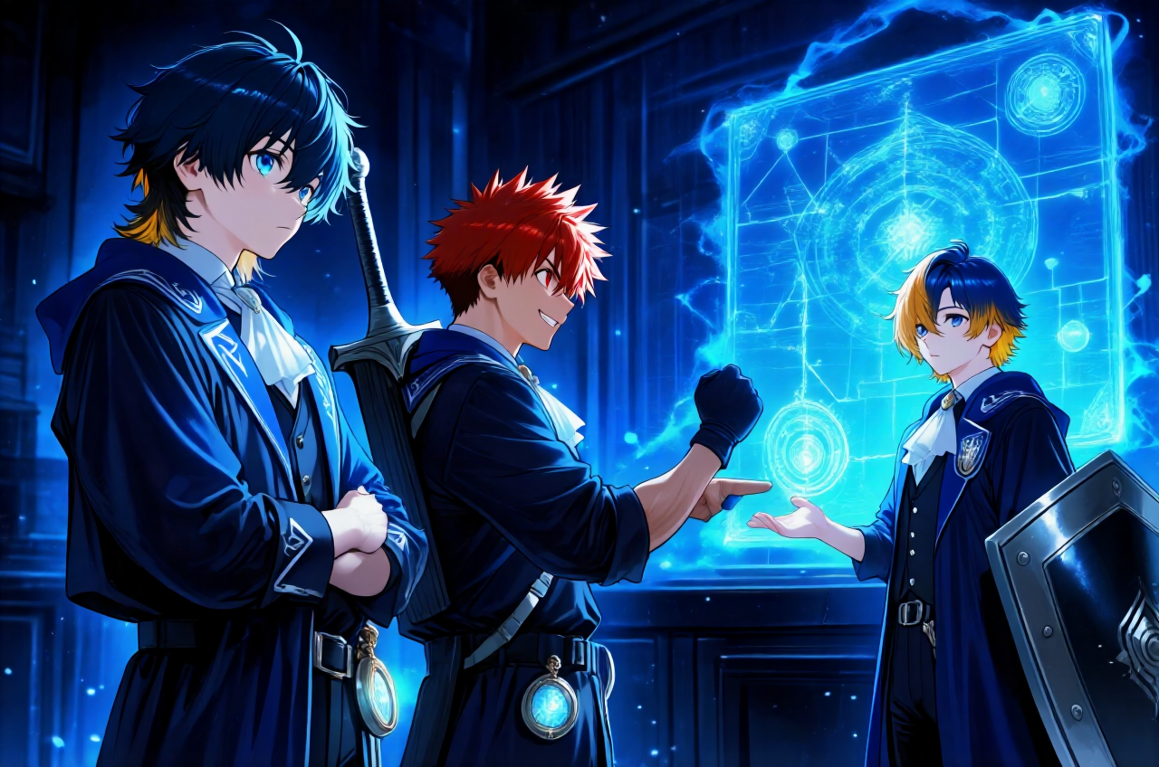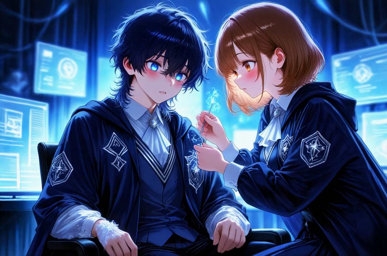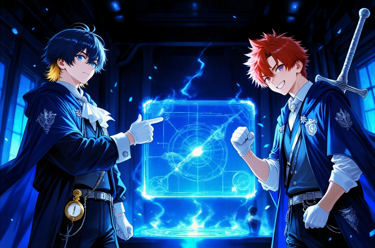 あらすじ 魔導解析室はオゾン臭と冷却ファンの重低音に満ち、青白いホログラムが私の眼鏡を冷たく染めるが、焼き切れた懐中時計だけが赤い数字で無慈悲に明滅していた。 表示は『88日 10時間 05分』であり、私はそれをアイリスの命を燃料にアリアが買い取った勝利の代償として受け止めた。 演算は非情で、第四訓練場でのオーバーキルでアリアの一撃はわずか数秒でアイリスの寿命を約十八時間分燃やし尽くしていた。 かつて理論魔法の神童だった彼は、自身の命さえタクトに変え、理論式の外側にある彼独自の未定義領域を展開していた。 私は「計算機が泣いている」と呟き、波形が理論を超えたノイズと化した現実に、信じてきた正解そのものが揺らいだのを感じた。 アイリスの黄金の残響が削れるたび、アリアの指先は痛いほどの白へ染まり、私は白衣のボタンを掛け違えたまま前髪を払った。 深夜の熱気が背中のシャツを貼り付かせる中、背後の大気は重く沈み、底知れない影が室内から音を奪った。 廊下の闇を引きずったようなアリアが立ち、月光に晒された指先は病的な白で微かに震えていた。 私は解析完了を告げ、「結果を確認する覚悟」を問うと、彼は「観測結果として処理する」と温度のない声で答えた。 私は『88日』という効率の悪い数字を指摘し、彼は理解した上でそれでも選択したと表情を動かさずに応じた。 彼は「命を燃やし尽くす前に最速で駆け抜けるための最短ルート」を計算してほしいと静かな狂気を宿して求めた。 私は視線を外し、母レイナが遺した完璧な理論式ではなく暗号化され封じられた泥水のようなデータ群を開いた。 最短ルートは算出済みだが正解の道ではなく、完璧な理論が式の外側のノイズをエラーとして全捨てした廃棄領域を私はこじ開けた。 彼は廃棄領域に未定義要素があるのかと問うが、私は正しい手順ではソランの一〇〇%に勝てず、ただ限界を超え物理的に粉砕する蛮族の解法が眠ると示した。 私は学院地下に封印された旧式魔導試験場の構造図と、魔力自壊を肩代わりする過負荷耐性触媒である古代の心臓片の記録を引きずり出した。 それを使えば指先の白化と命の燃焼効率を一時的に下げられるが、取得までの生存確率は〇・〇三%という統計的有意差のない事故領域だと明言した。 私は理論を信奉しながらも、彼らが意図的に事故を引き起こす例外事象になる作戦に、自らの演算回路へ許容外の負荷を容認した。 アリアは私を観測者として失敗作の道に誘うが、私は未解明のバグという奇跡を実証したい解析者であり、美しい正解のデッドエンドを受け入れるつもりはないと返した。 彼は蛮族の解法を自らの指先で過負荷させると頷いたが、その瞬間、重い扉が蹴り開けられた。 リンネが「五倍味噌」を携えて乱入し、オゾン臭を味噌の香りで駆逐しながら脳細胞を蒸気殺菌すると豪語した。 私は空調への明確な破壊行為だと皮肉るも、彼女は保温水筒の高粘度ブラックホールをデスクに叩きつけ、塩害を顧みない。 アリアはその塩分濃度が致死量の閾値すれすれで栄養効率は低いが摂取可能だと淡々と評価し、強引に飲み干した。 物理的熱量と暴力的な塩分は彼の生体反応を叩き起こしたが、指先の白はなおも冷たく透き通り、深淵の冷気は消えなかった。 リンネは彼の破れた袖を見て手首を掴み、裁縫道具で縫いながら「白くなろうと糸で地面に縫い止める」と現実へ引き戻した。 チクチクと針が布を通る音が、解析室の絶対零度のロジックを泥臭いフィジカルで上書きし、私は彼女の非論理的な熱量を最強の物理的アンカーと認めた。 リンネは私にも味噌を勧め、私は視界の解像度確保のため飲み干し、内部温度〇・四度上昇という解析不能な熱量に舌を巻いた。 そこへクロスとリアムが駆けつけ、私は全員の端末に旧式試験場の構造図とルートを送信し、論理的解決のフェーズへ移行した。 封印指定領域への侵入は表向き環境調査だが、実態は生存確率を〇・〇三%から〇・〇四%に引き上げる火事場泥棒であり、明朝アリアの部屋で最終確認後に作戦開始と決めた。 盾で先陣を切ると息巻くクロスと大胸筋で暗闇を照らすと豪語するリアムに呆れつつ、私は去ろうとするリンネの腕を引き留めた。 私はもし地下で彼がシステムダウンに落ちそうになり数式が間に合わなければ、彼女の非論理的な熱量で物理的に引き戻すよう密かに依頼した。 リンネは即座に頷き、水筒を叩いて「絶望してる暇を細胞レベルで叩き込む」と力強く請け負い、分厚い扉の向こうへ去った。 静寂が戻り、冷却ファンの虚無的重低音と明朝へ向けた赤いカウントダウンだけが室内を満たし、私は銀縁眼鏡を外して目頭を押さえた。 メインモニターにはアリアが特異点へ踏み入れた波形が狂った心電図のように明滅し、救済の譜面ではなく自己相殺ループという声なき悲鳴が可視化されていた。 演算システムは生体魔力回路許容負荷四〇〇%超過による完全崩壊を予見